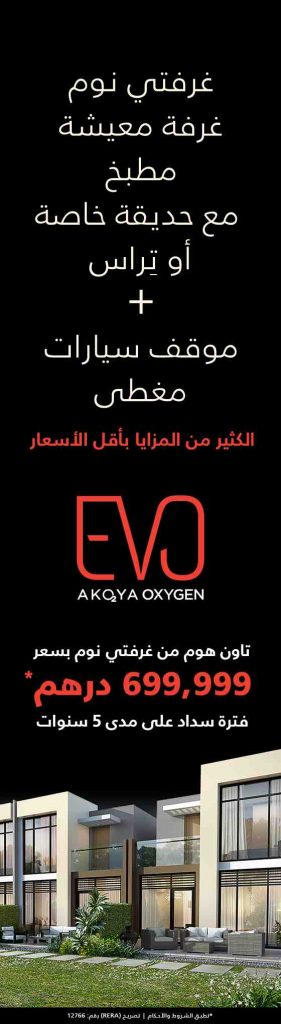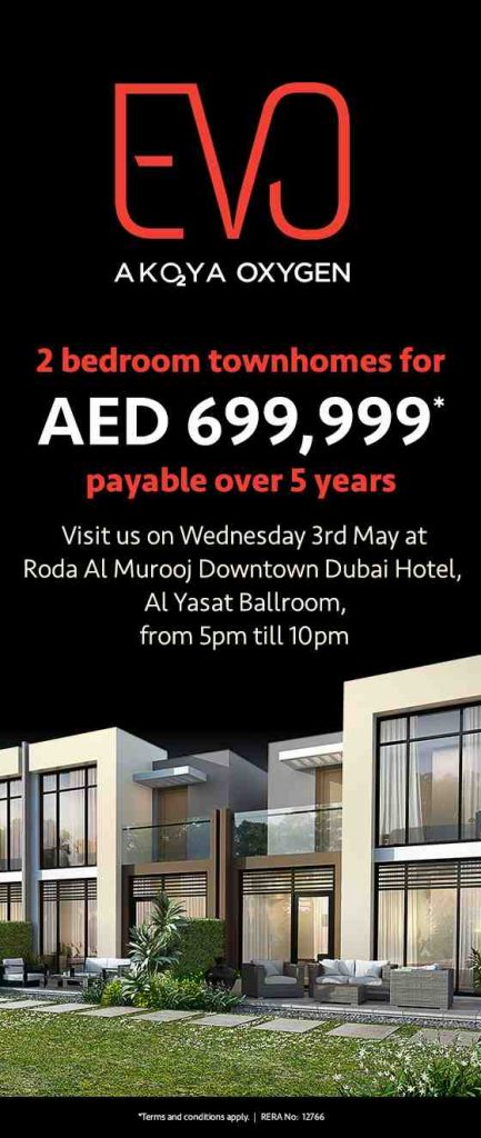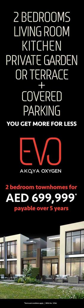 the launch of EVO Villas, the newest 2 bedroom townhomes in Akoya Oxygen with starting price of only AED 699,000 and payable over five years.